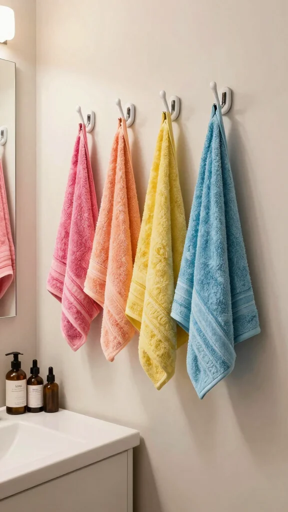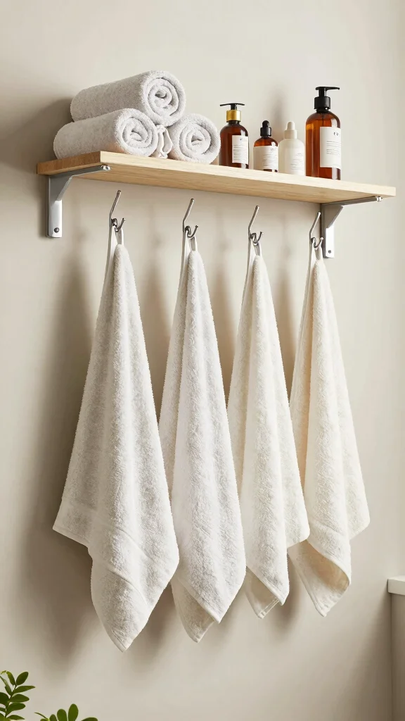 Hooks for towels might seem straightforward, but they offer incredible efficiency in small bathrooms. Strategically placed near the sink or tucked inside cabinet doors, they provide a seamless storage solution that keeps your towels within easy reach.Their accessibility makes them perfect for daily use, and they come in a wide variety of styles, from whimsical to sleek. Grouping multiple hooks together can create a coordinated look that accommodates several towels.Utilize hooks effectively with these suggestions: