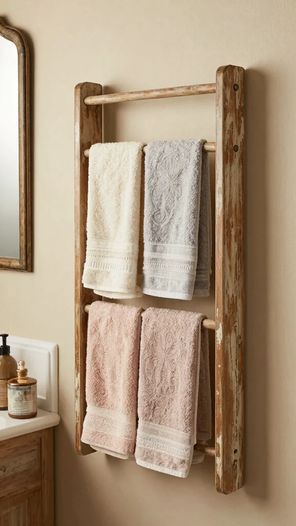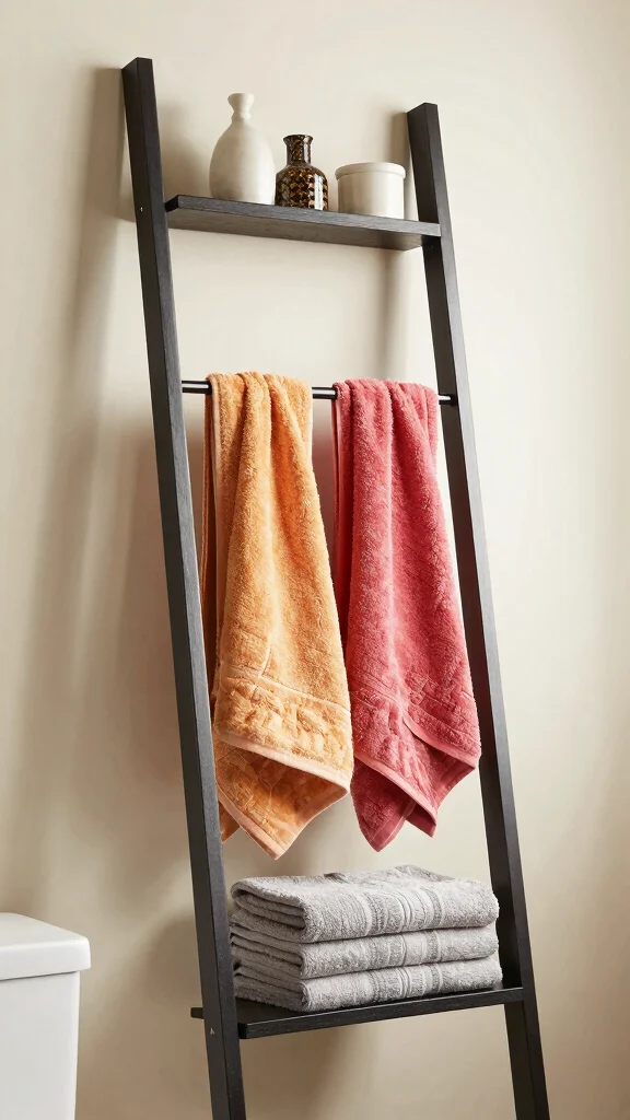 A freestanding ladder rack serves as a stylish yet functional accent in your bathroom. This design elevates your decor while providing vertical storage for towels and decorative items alike. Placing it in a corner or beside a vanity adds dimension and creates a more spacious feel in compact areas.To make the most of this storage solution, choose a design that complements your existing decor style, whether it be modern or rustic. Seek out budget-friendly options at local home goods stores or online retailers.Here are some ways to utilize a ladder rack effectively: