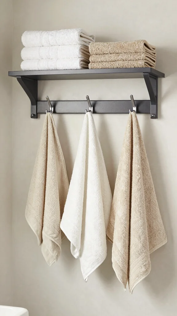 – Multi-Functional Towel Storage: Look for racks that integrate hooks and shelves. This dual-purpose furniture maximizes your small bathroom space and keeps it tidy.