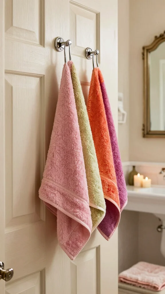 – Over-the-Door Hooks: A simple yet effective solution if you’re short on wall space. These hooks utilize existing doors to hang towels conveniently.