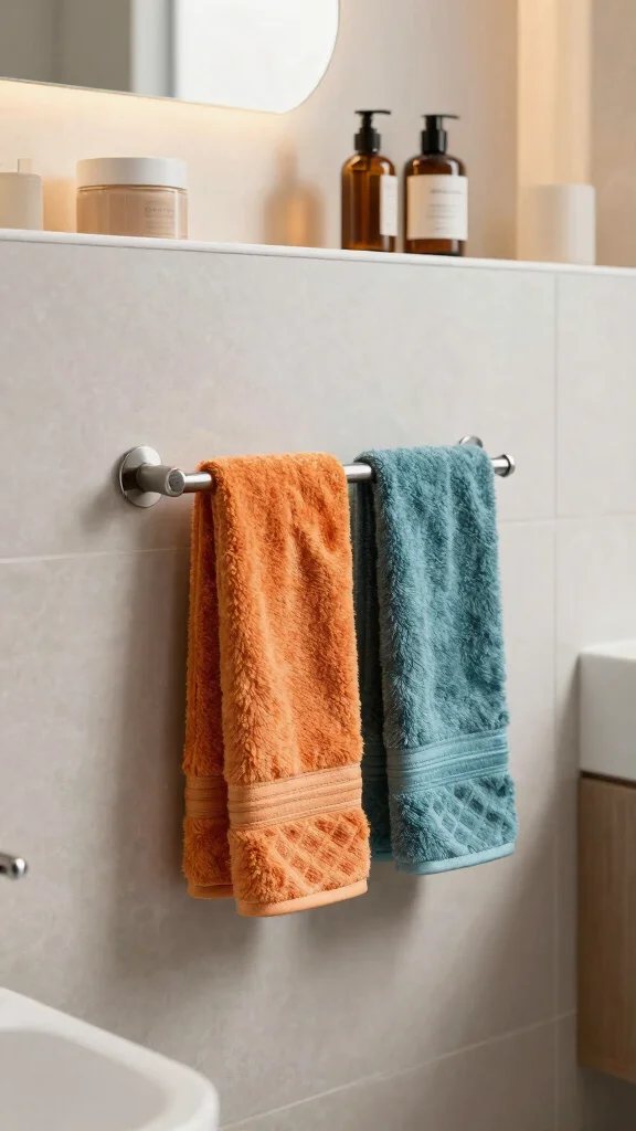 Pro Tip: If you’re short on space, consider a towel rack that doubles as a decorative piece, such as a ladder rack. Not only does it hold towels, but it can also display decorative items or plants, adding character to your bathroom while remaining functional.
