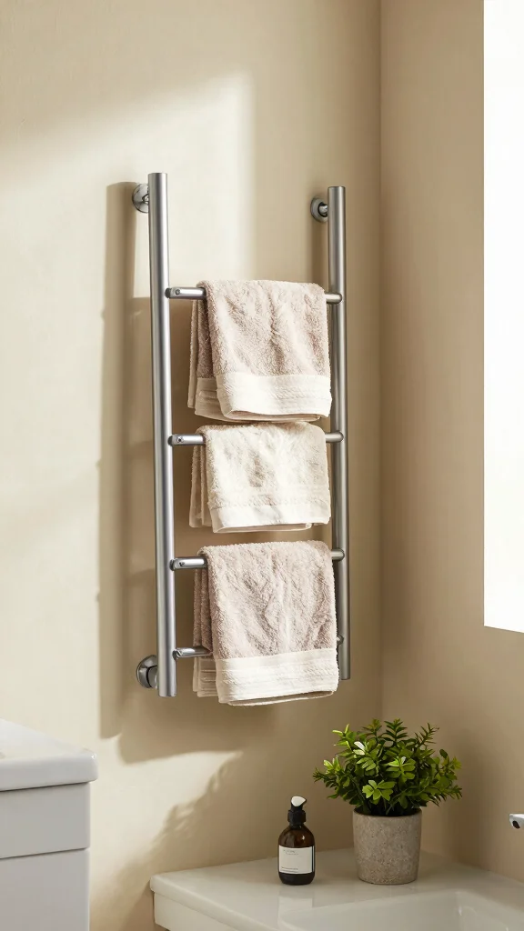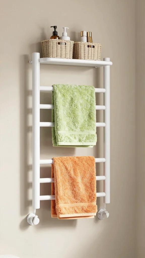 – Freestanding Ladder Rack: Perfect for adding a decorative touch, ladder racks provide multiple levels for towel storage without needing to drill into walls.